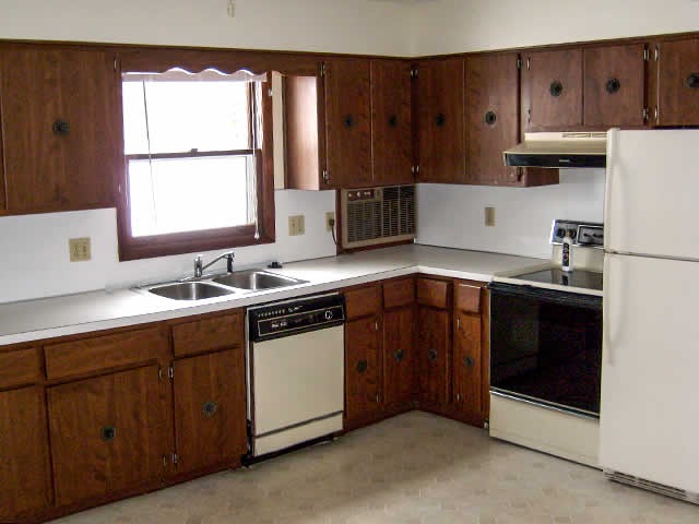 - B. Large Two Bedrooms, Two Story Apartment, 1 1/2 Baths, 1,240 sq/ft Stove, Refrigerator, Dishwasher, Total Electric On-site Laundry Room with pay machines.